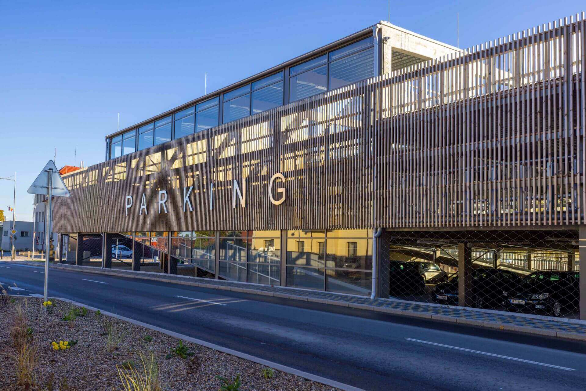 Parkovací dům se nachází u vlakového nádraží v Masarykově ulici, k dispozici je celkem 97 parkovacích míst, z toho 5 pro invalidy a 2 pro možnost nabíjení.